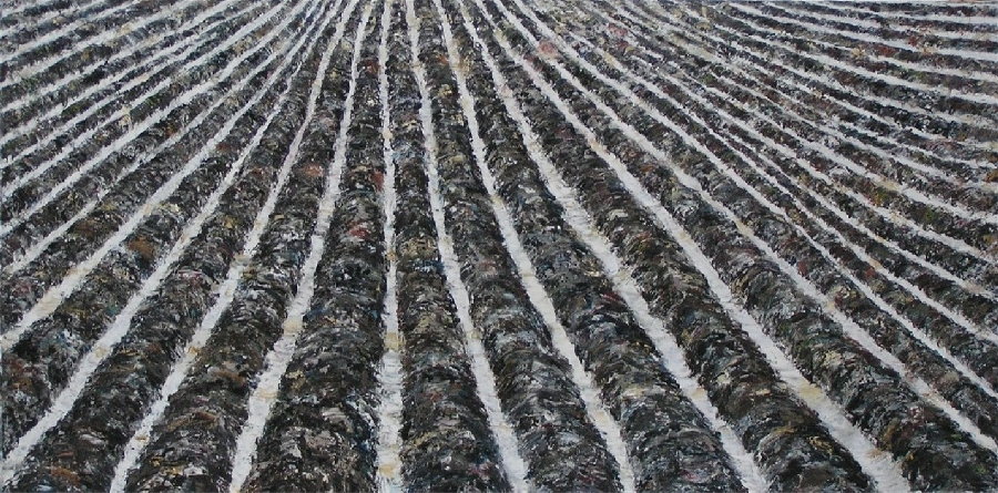 So stehen die rhythmischen Farbbänder im Bild sowohl für die sichtbaren Ackerfurchen, den Wechsel der Erd- und Pflanzenreihen im Feld, als auch für den immer währenden Ablauf der Jahreszeiten, von Saat und Ernte und den Rhythmus des Lebens zwischen Hoffnung, Liebe, Trauer und Schmerz.